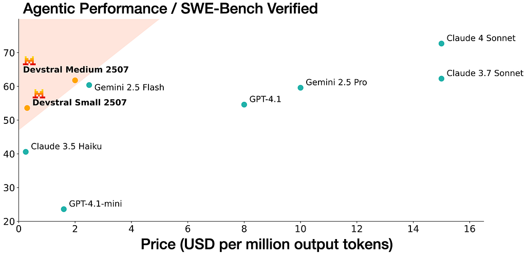 - Devstral Medium: Available through Mistral’s API, this larger model scores an impressive 61.6% on SWE-Bench Verified, surpassing proprietary models like Gemini 2.5 Pro and GPT-4.1 at a fraction of the cost. It supports enterprise-grade customization and on-premise deployment for enhanced privacy.